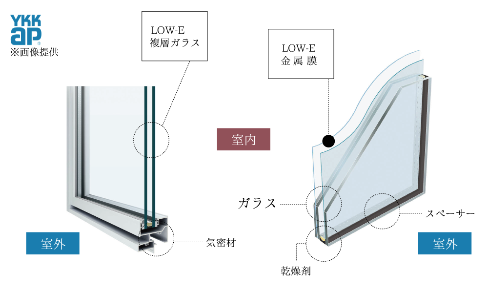 加度商の標準仕様では、断熱性・遮断性に優れた「樹脂窓」+「LOW‐E複層ガラス」の組み合わせることで、断熱性が高く、結露の生じない設計にしています。