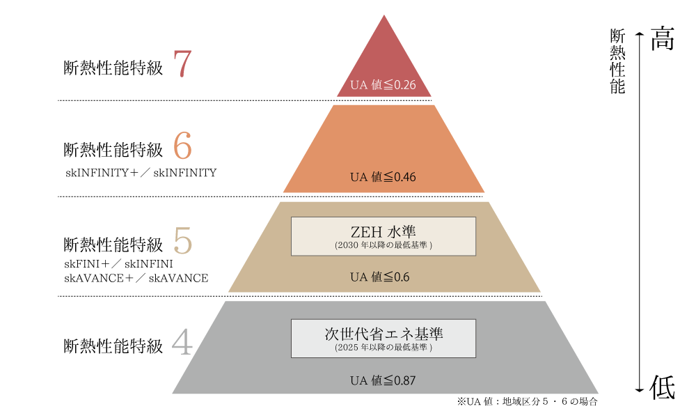 断熱性能特級4と比べて冷暖房効率が向上するため、節電効果や日々の快適さを実感できます。